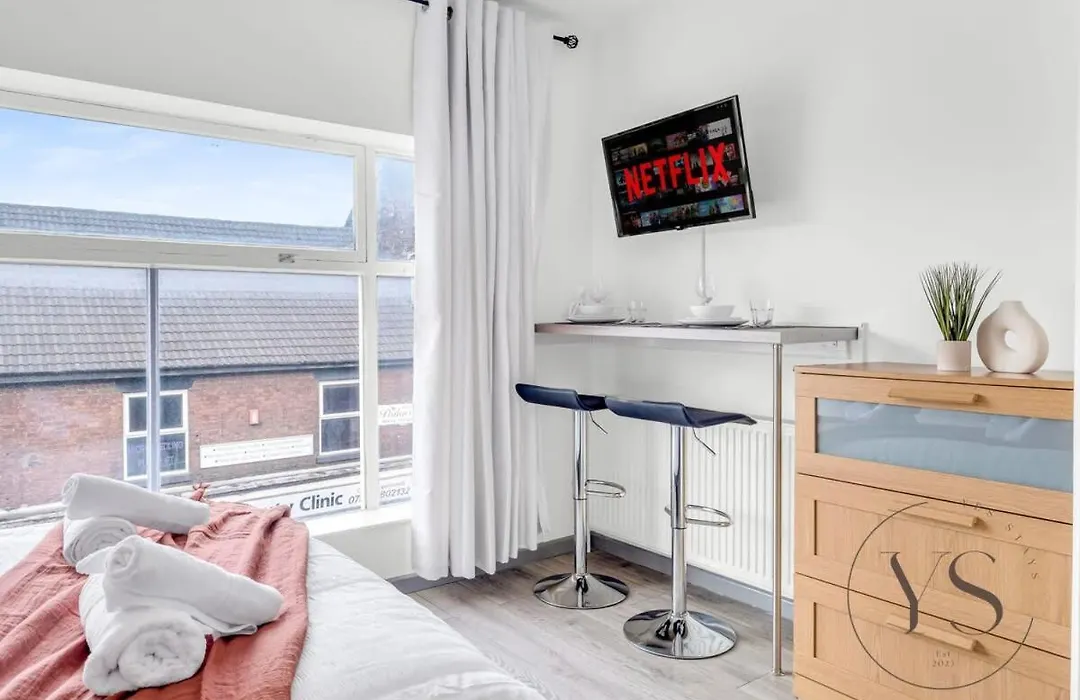 O Modern 1A Longton Studio Near Alton Towers With Free Wi-Fi & Kitchenette Stoke-on-Trent de 20 m² está localizado a 10 minutos de carro de Genting Club e a 3.5 km de Universidade de Staffordshire. Os hóspedes podem usar Wi-Fi por motivos de negócios ou lazer.
